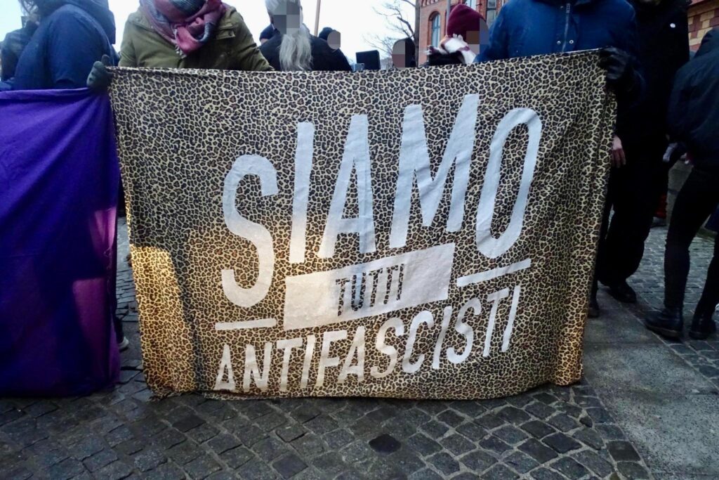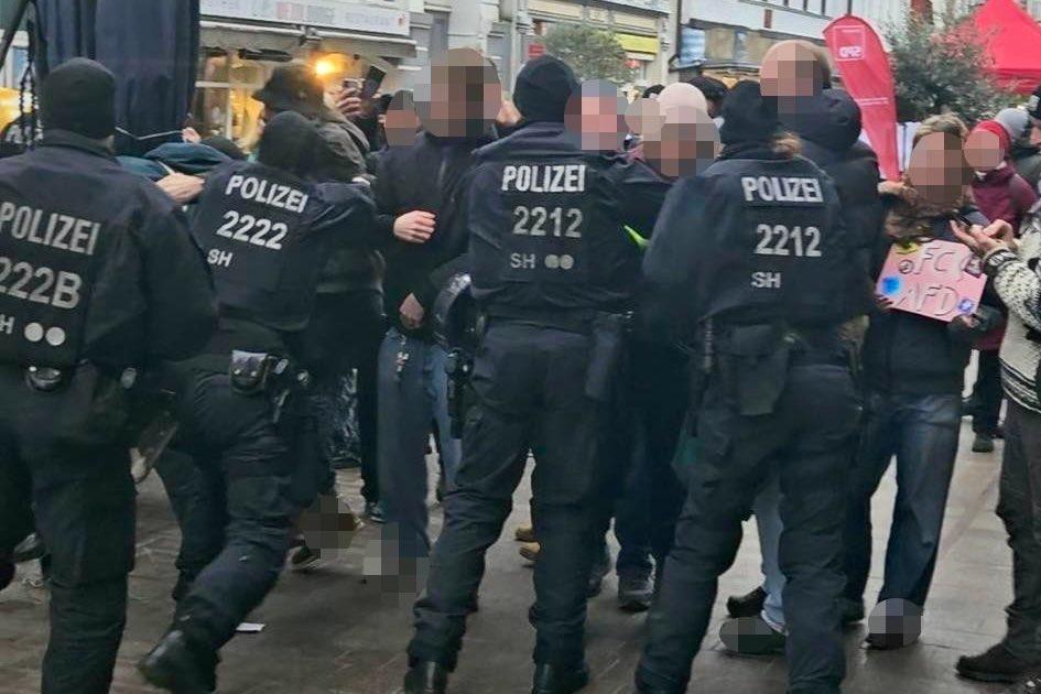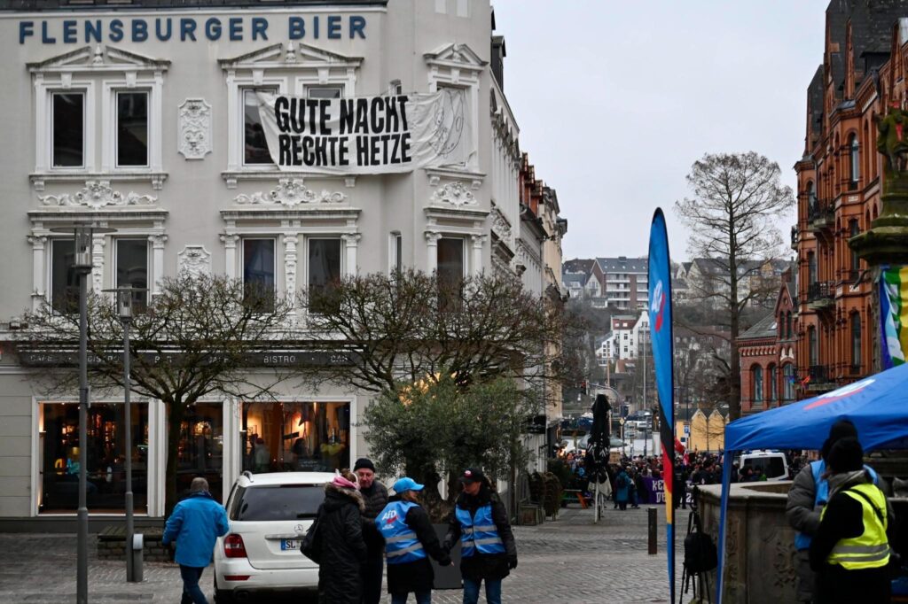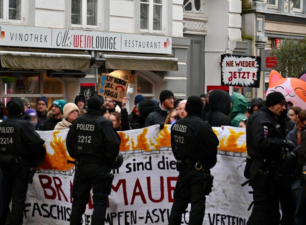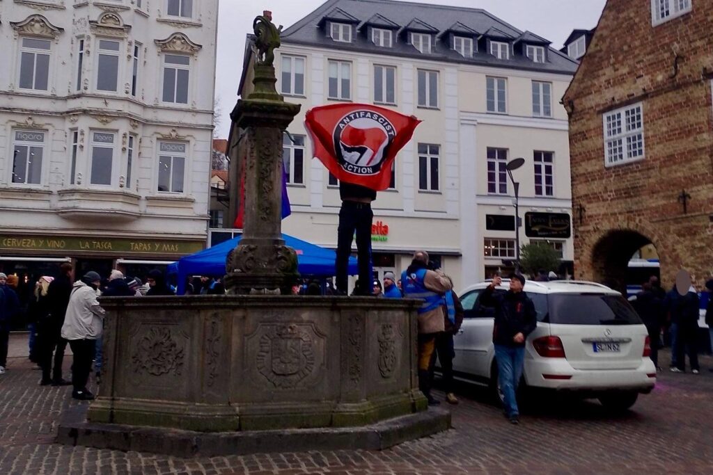 Trotz eisiger Temperaturen schlossen sich am Samstag, den 24.01.26, bis zu 1.000 Menschen den Protesten gegen einen AfD-Stand in der Flensburger Innenstadt an. Dabei ist ihnen Widerstand von allen Seiten gelungen – mehrere Kundgebungen rund um den Nordermarkt beschallten den AfD-Stand stundenlang mit dem „Scheiß AfD“ – Song, laute Sprechchöre waren über den gesamten Nordermarkt zu hören und es gab mehrere (teilweise) erfolgreiche Störversuche von Anfaschist:innen.